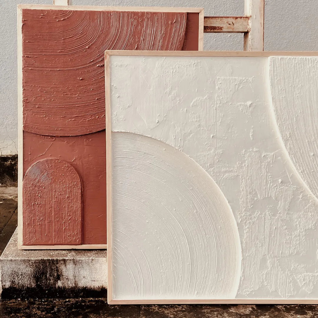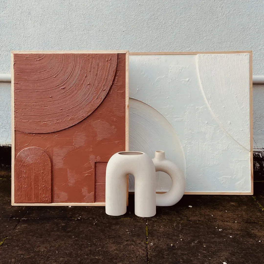 Coco Wall Art is a study in subtle form and texture. Softly layered curves and hand-worked surfaces create a quiet rhythm, bringing depth without visual heaviness. Rendered in earthy, grounded tones, the piece balances warmth and restraint-making it an effortless addition to living spaces, bedrooms, or thoughtfully curated corners.