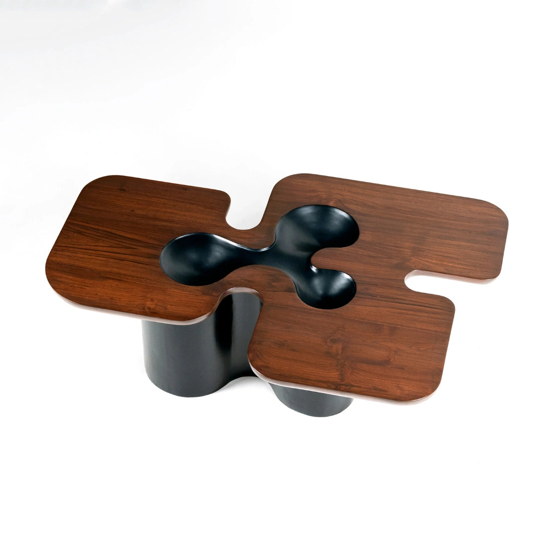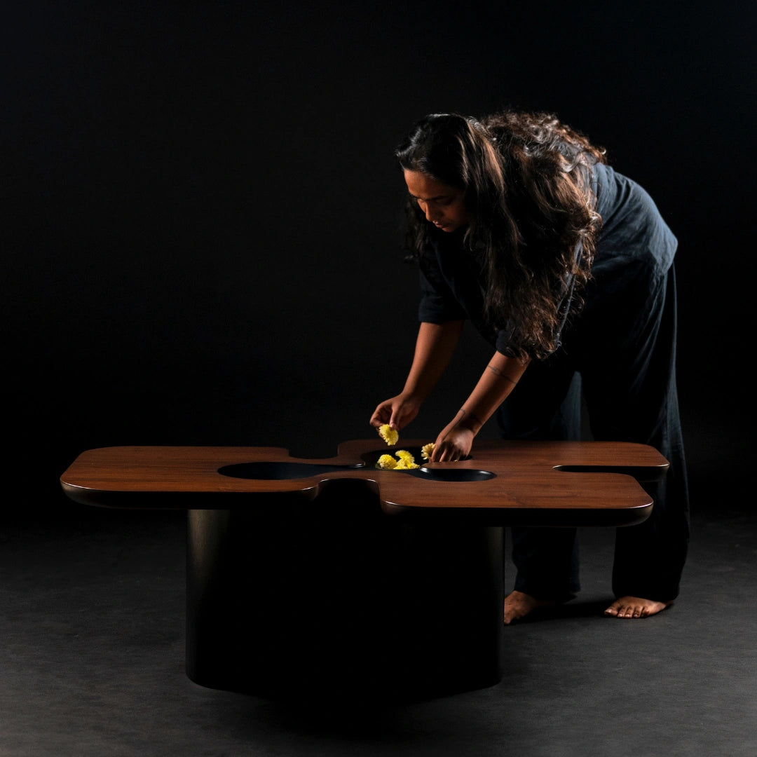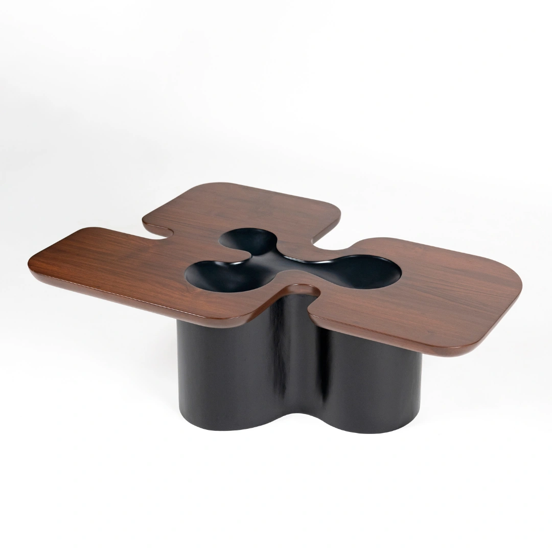 The Canyon Centre Table explores the balance between mass and lightness. Carved bowl-like depressions punctuate the surface, giving the table its distinctive identity. Anchored by a solid central base, the top appears to gently float, creating a form that feels voluminous yet light. Finished in dual tones, the carved details are subtly accentuated, inviting both touch and use.
