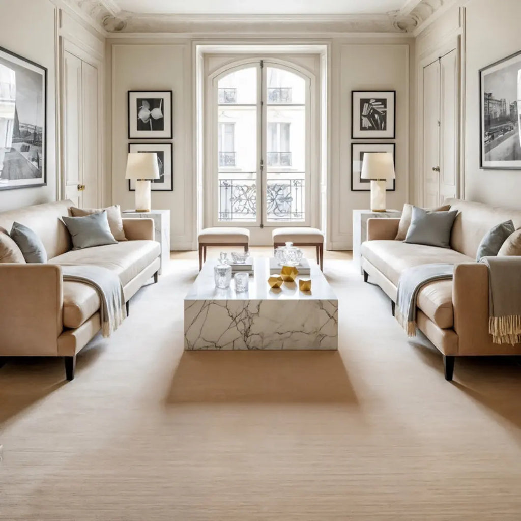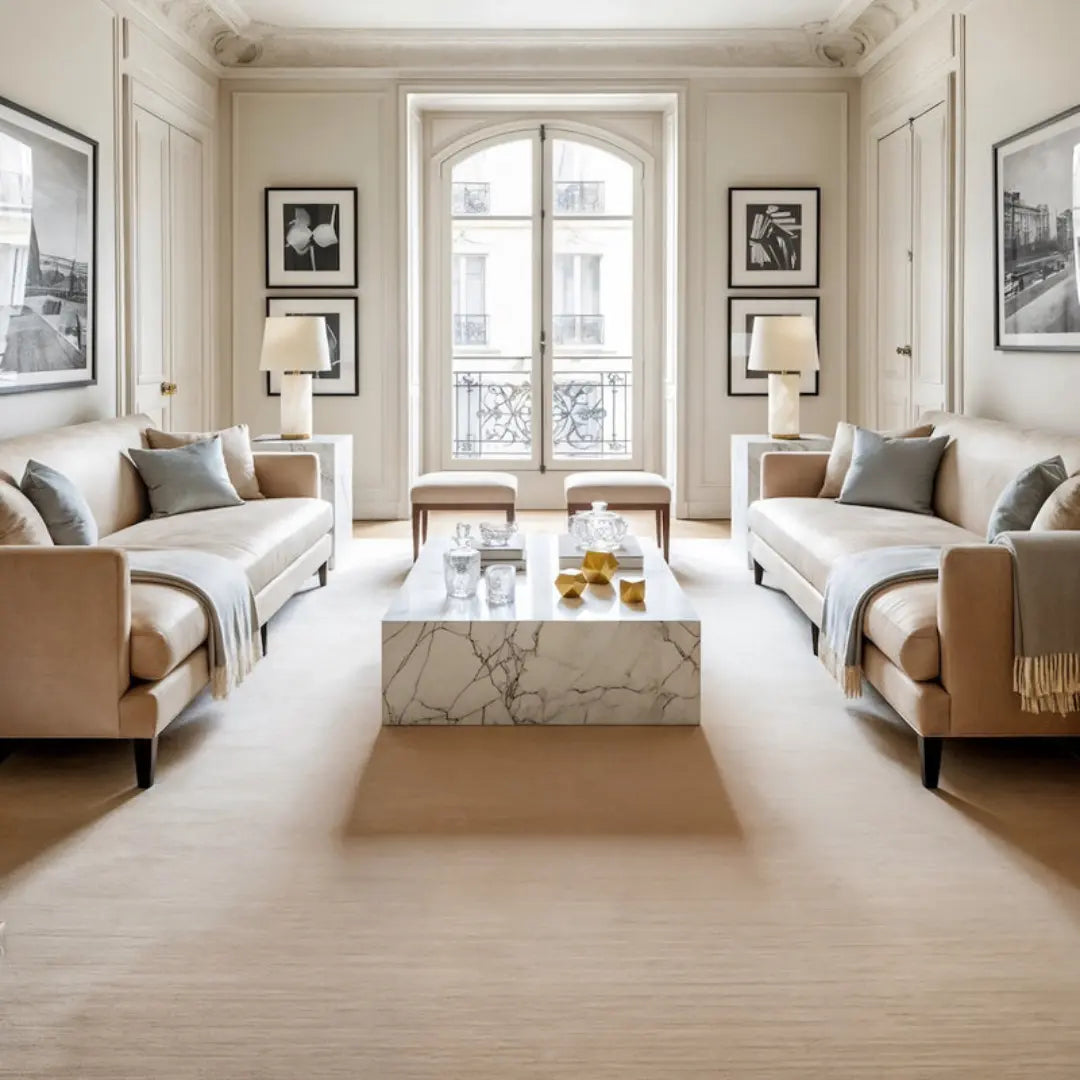 Its gentle hue pairs effortlessly with natural materials and minimalist interiors, offering a soft foundation that complements both modern and timeless spaces.
