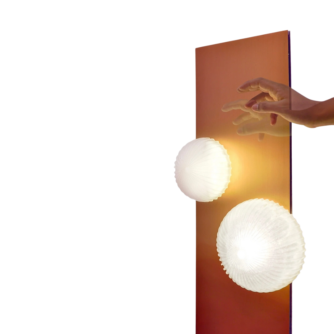 Hand-carved alabaster globes soften the illumination, creating a glow that feels calm, familiar, and lived-in. Designed to exist between object and atmosphere, Arc brings quiet presence and warmth into a space-without demanding attention.