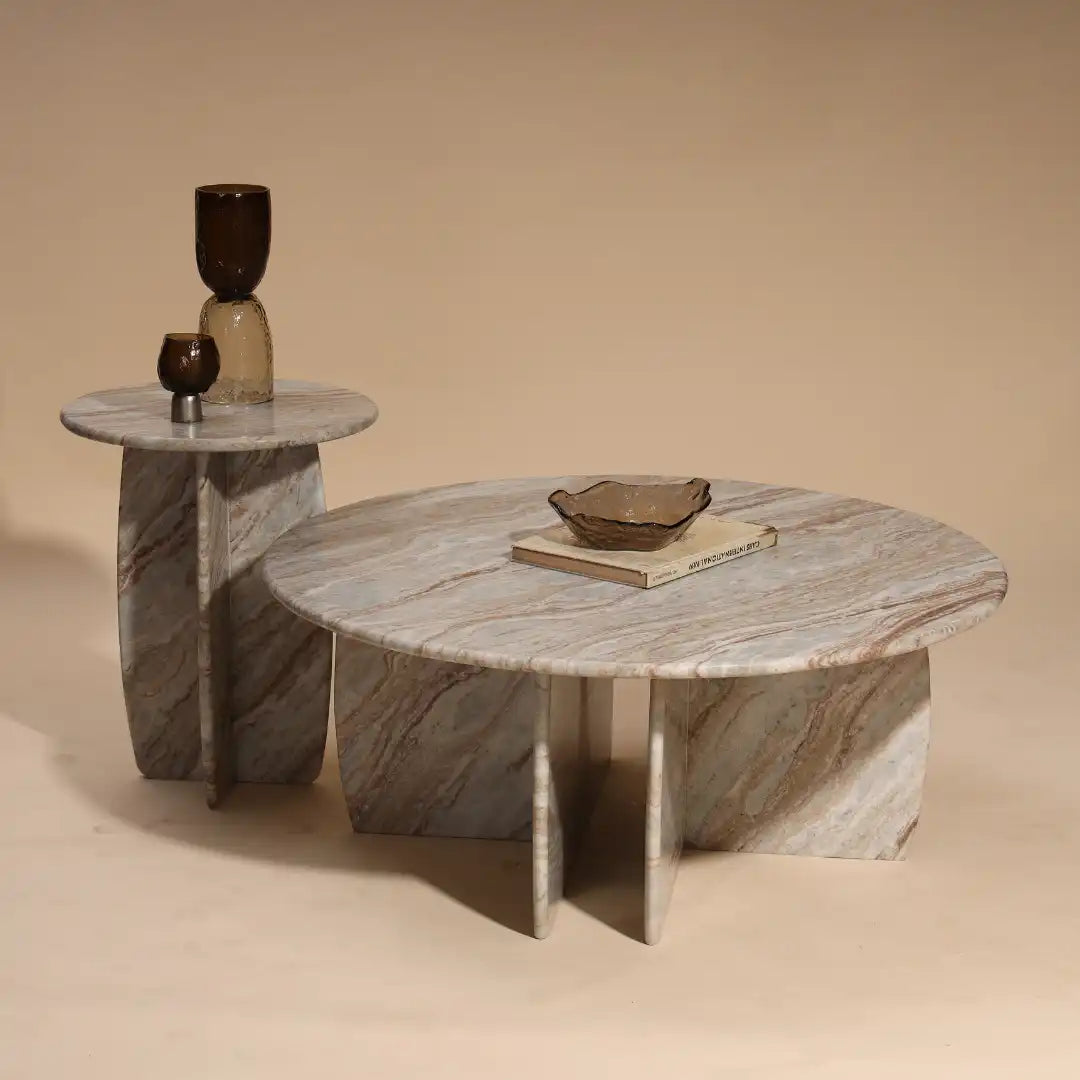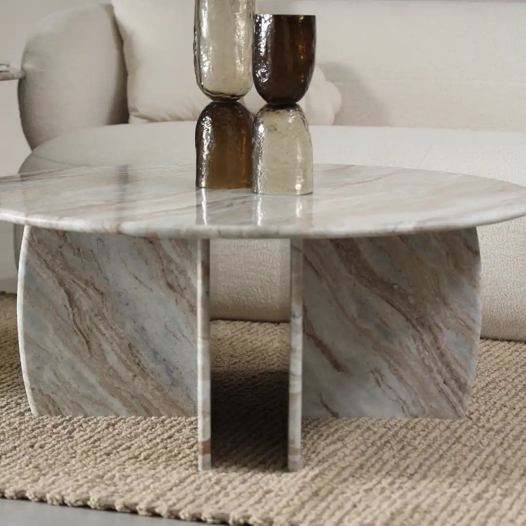 • Introducing the Raio Coffee Table - Jupiter :  Our newly designed marble tables feature gentle curves on the tabletop and arched legs, creating an warm, cozy and inviting aesthetic.