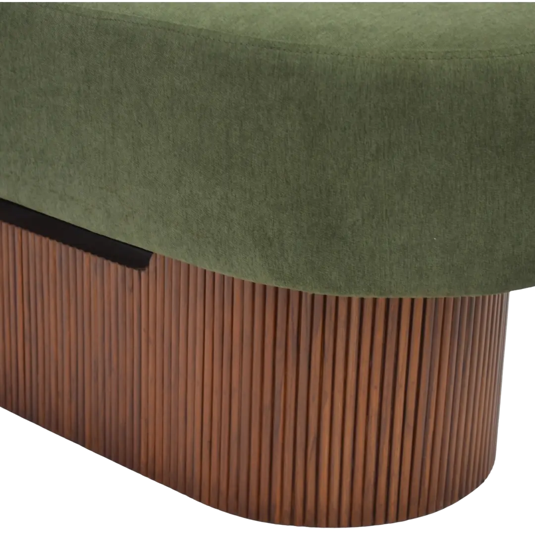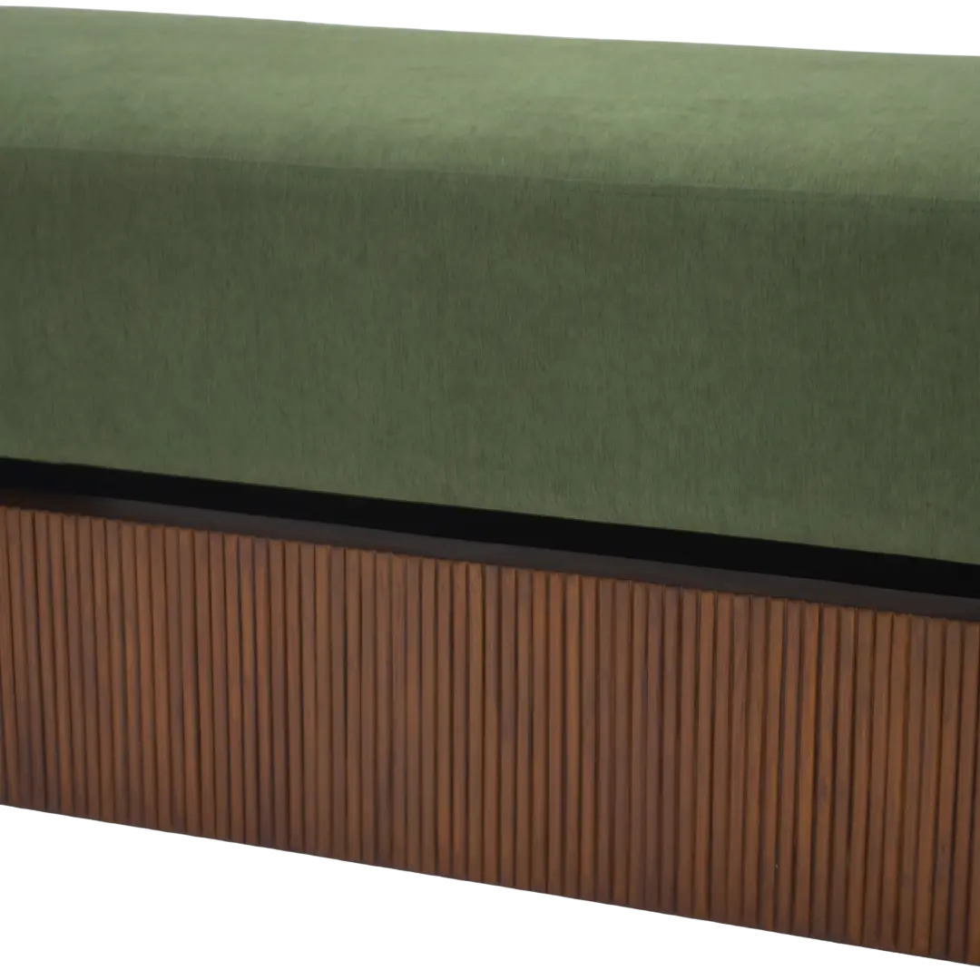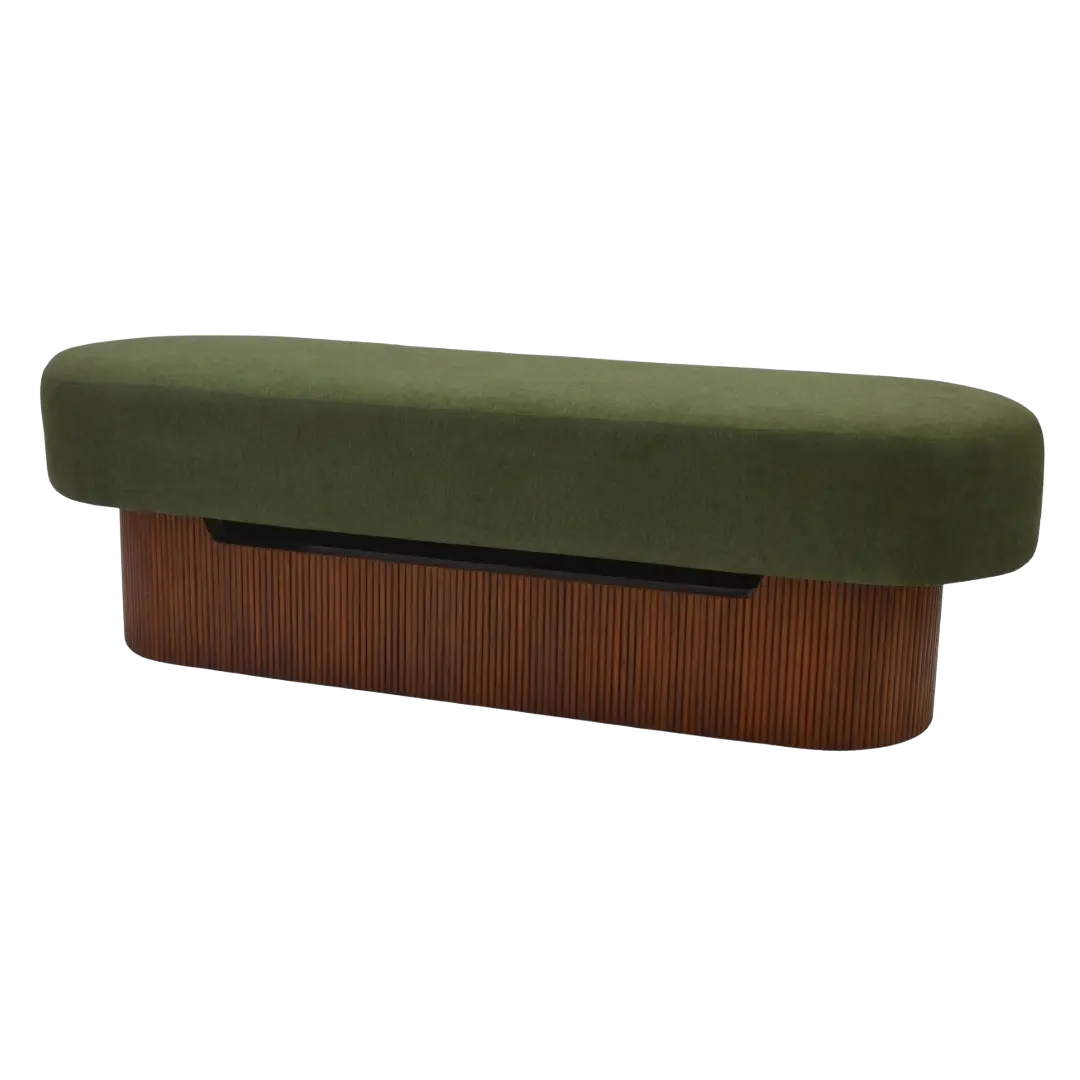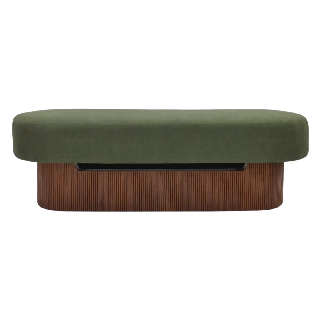 Introducing Sablon, a stunning bench, where elegance meets comfort. Featuring a distinctive base crafted from wood, Sablon showcases a graceful curve in the middle that echoes the natural lines of sand dunes. Topped with a plush upholstered surface in a. refreshing green fabric, this bench not only invites relaxation but also adds a vibrant touch to any space.