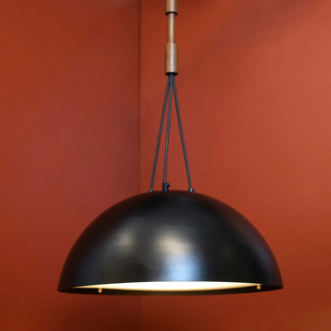 Crafted with meticulous attention to detail, this exquisite lighting fixture seamlessly blends high design aesthetic with the laid-back vibe of a seaside retreat. Constructed from teak wood accents and matte-metal finishes, the shade is suspended from a wire, making this pendant lamp suitable for lounge areas, beach-style dining spaces or sophisticated minimal interiors.