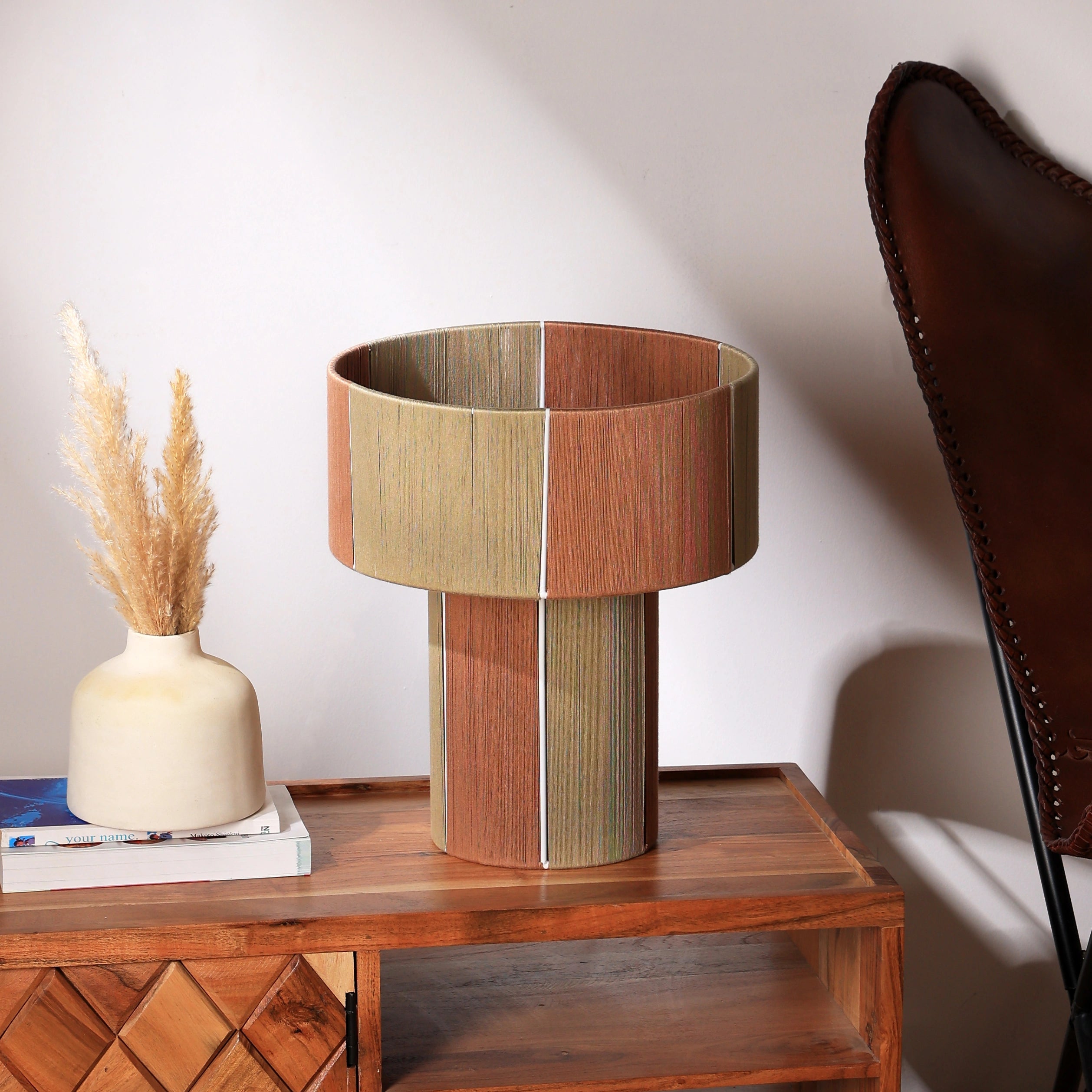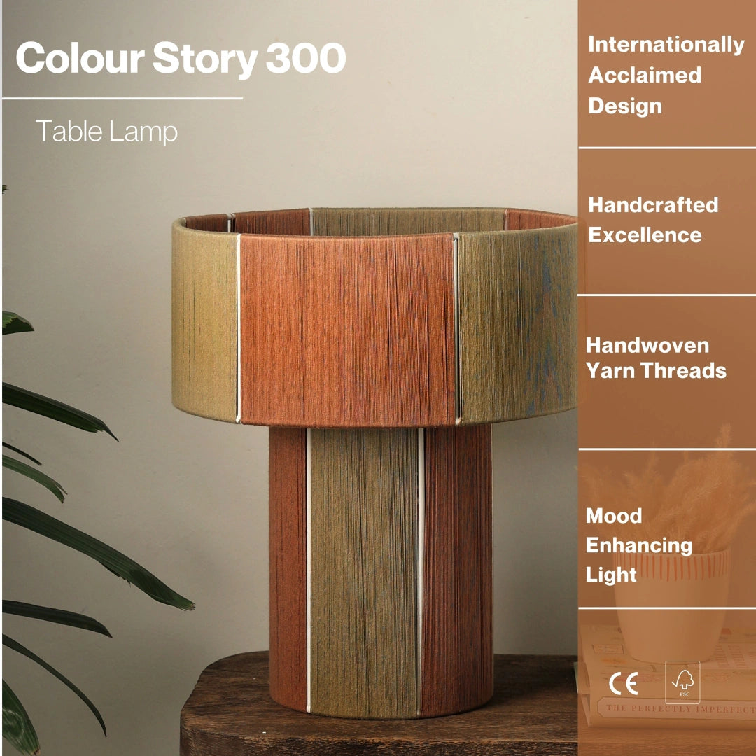 The Colour Story 300 table lamp by Fig,  is a perfect blend of Scandinavian design and Indian craftsmanship. Crafted in India by FIG Living, this handmade lamp features intricate threading techniques and comes with a specially chosen LED bulb. Its elegant packaging and dimensions of 31x31x35 cms make it a versatile and sophisticated addition to any modern living space. Elevate your home with this unique lighting masterpiece