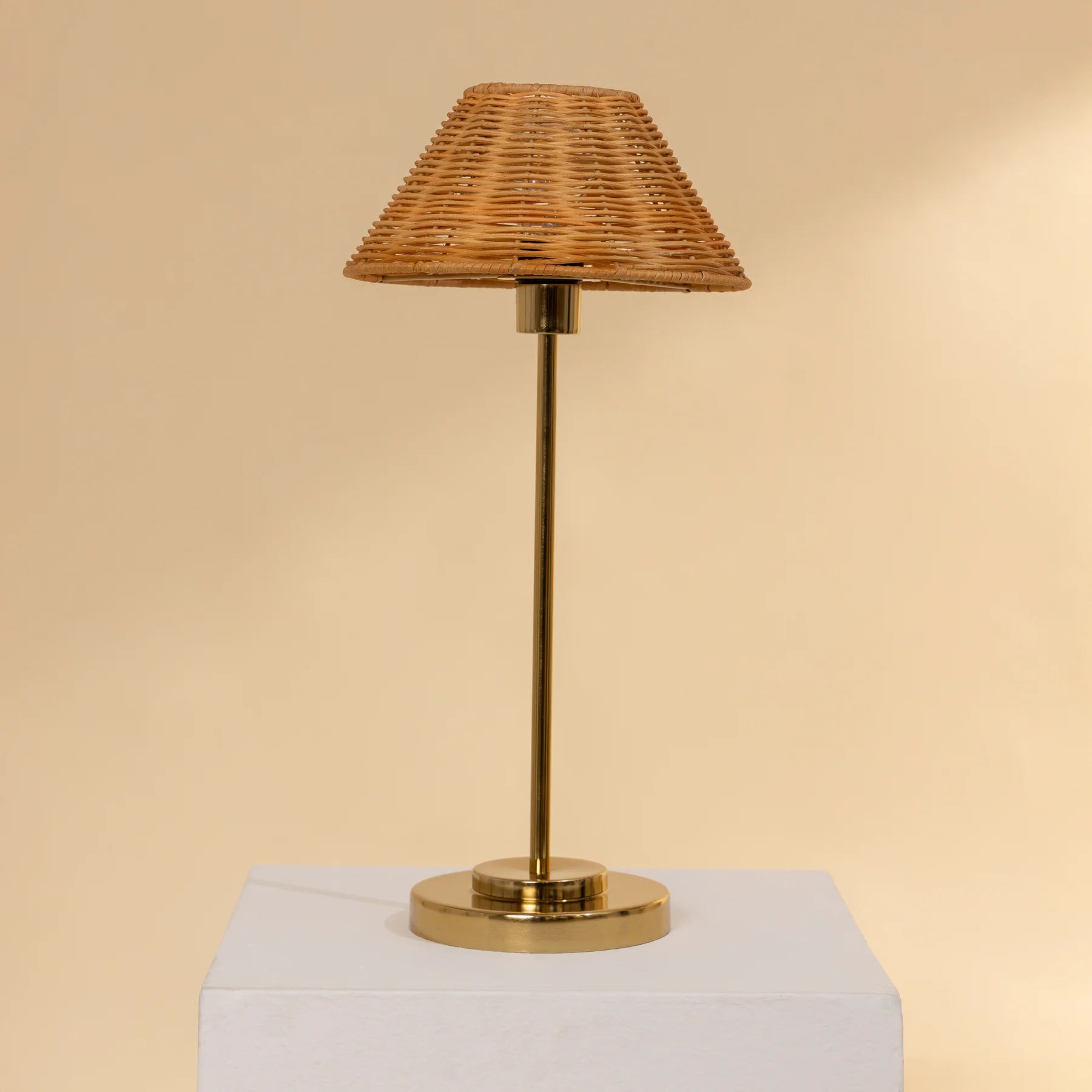 Dive into the realm of authentic handcrafted design with our Rattan Lamp. Woven with precision and passion, this piece is the epitome of organic beauty, blending natural rattan and cane to create a stunning masterpiece. Complemented by a lustrous golden electroplated finish, it's not just a lamp, but a statement of timeless grace.