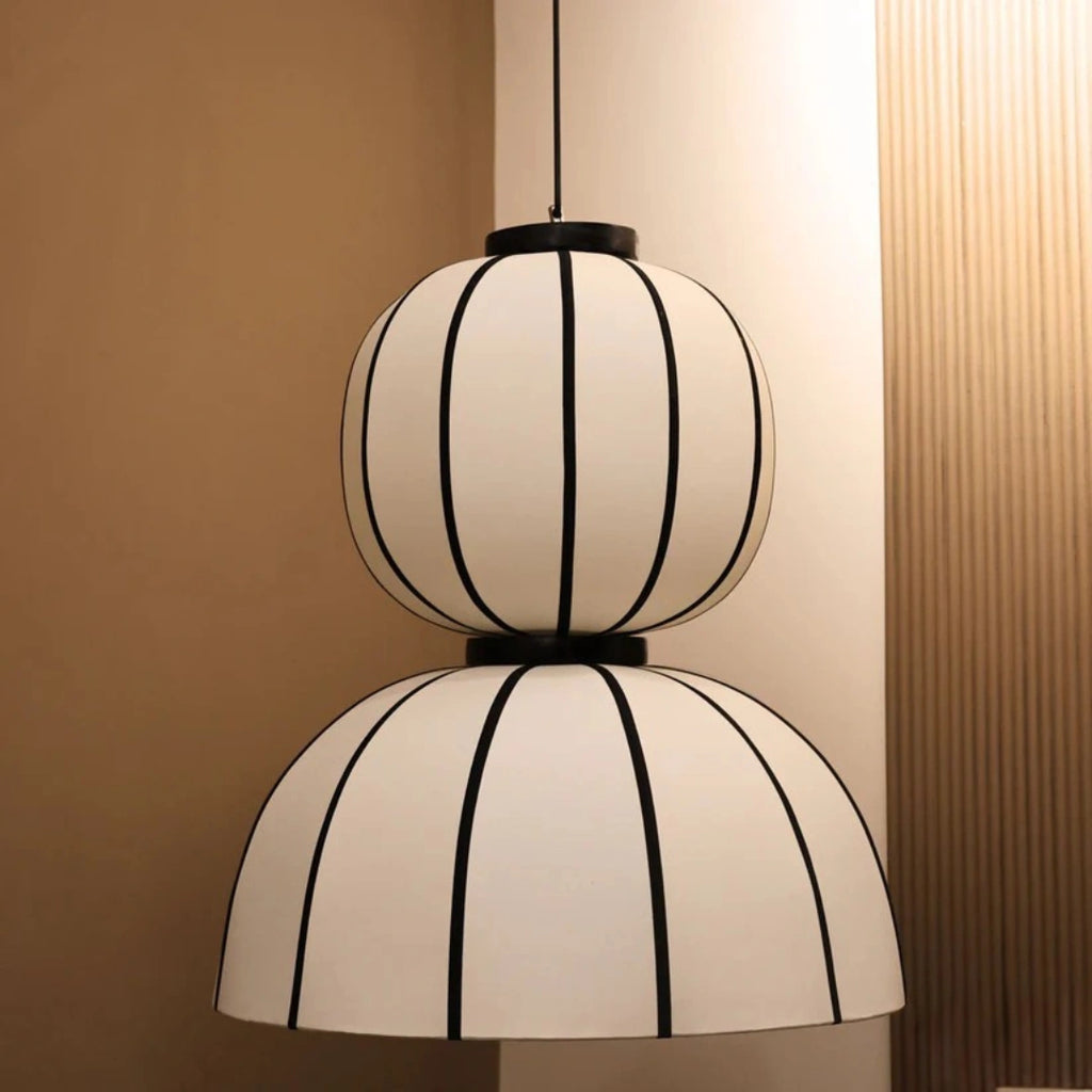 A poetic blend of shadow and glow. Inspired by traditional lanterns, this modern lighting collection features soft poplin fabric and bold black detailing. Aluna redefines minimal elegance, bringing timeless monochrome charm to contemporary spaces with a quiet yet captivating presence.