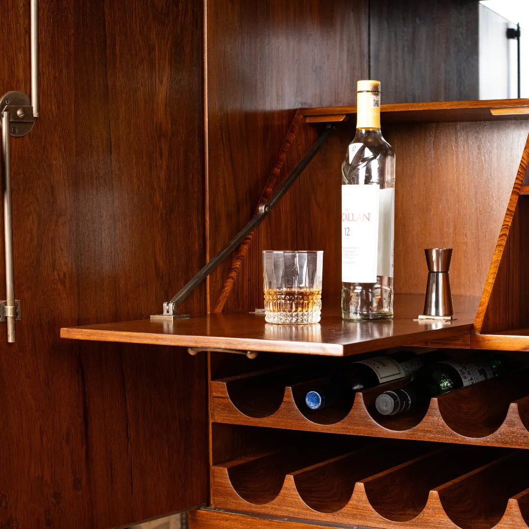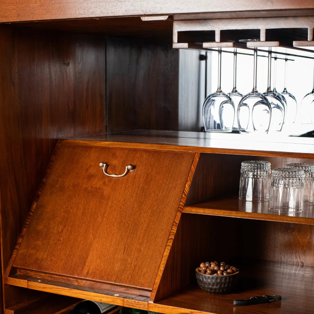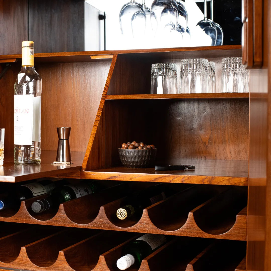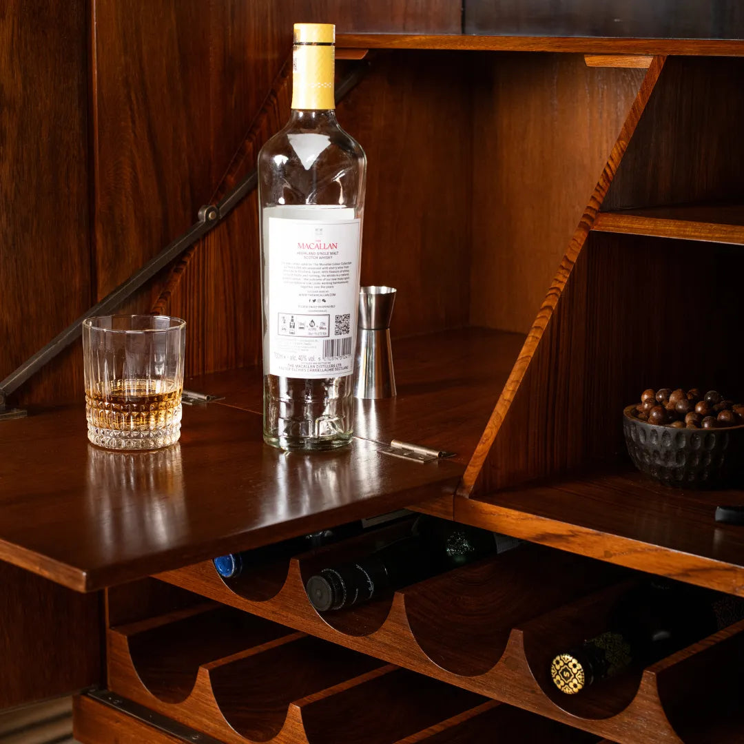 Tresse is a whimsical bar cabinet designed as a modern-day Pandora’s box. Its patterned facade hides a playful two-step opening mechanism, making interaction part of the experience. Crafted through CNC carving, hand carving, and turning, the unit celebrates wood in all its forms while offering optimized storage for every bar essential. A true blend of craft, detail, and delight.