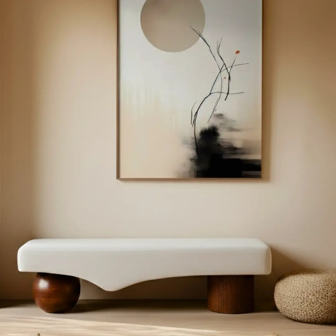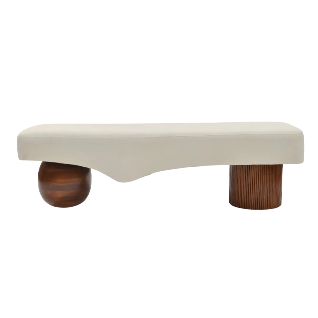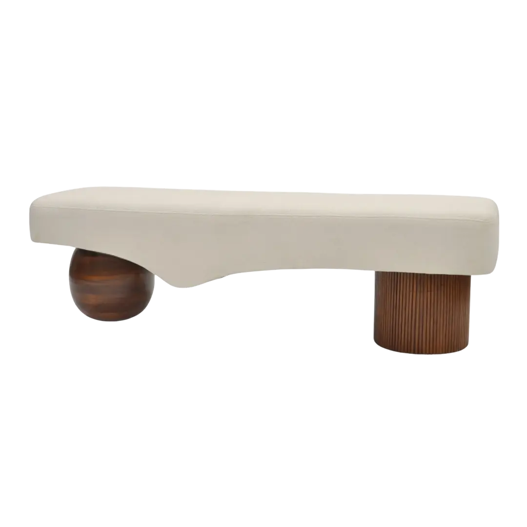 Introducing Solara, an exquisite bench, designed to bring a touch of elegance to any space. Featuring soft upholstery and gentle curves, Solara echoes the fluidity of sand dunes, inviting comfort and relaxation. The distinctive wooden leg on one side adds a striking contrast, blending natural elements with modern design. Perfect for a cozy nook or as a statement piece in your living area,  Solara beautifully embodies the warmth and serenity of the desert,  creating a welcoming atmosphere in your home.