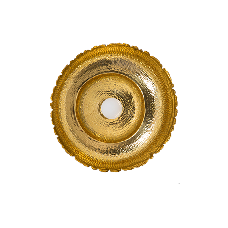 Made with 20 gauge brass sheet, the wavy lamp has an antique black exterior in contrast with hand beaten warm gold interior. The edges are left rough while shaping. Each piece is handmade and therefore has a unique personality.