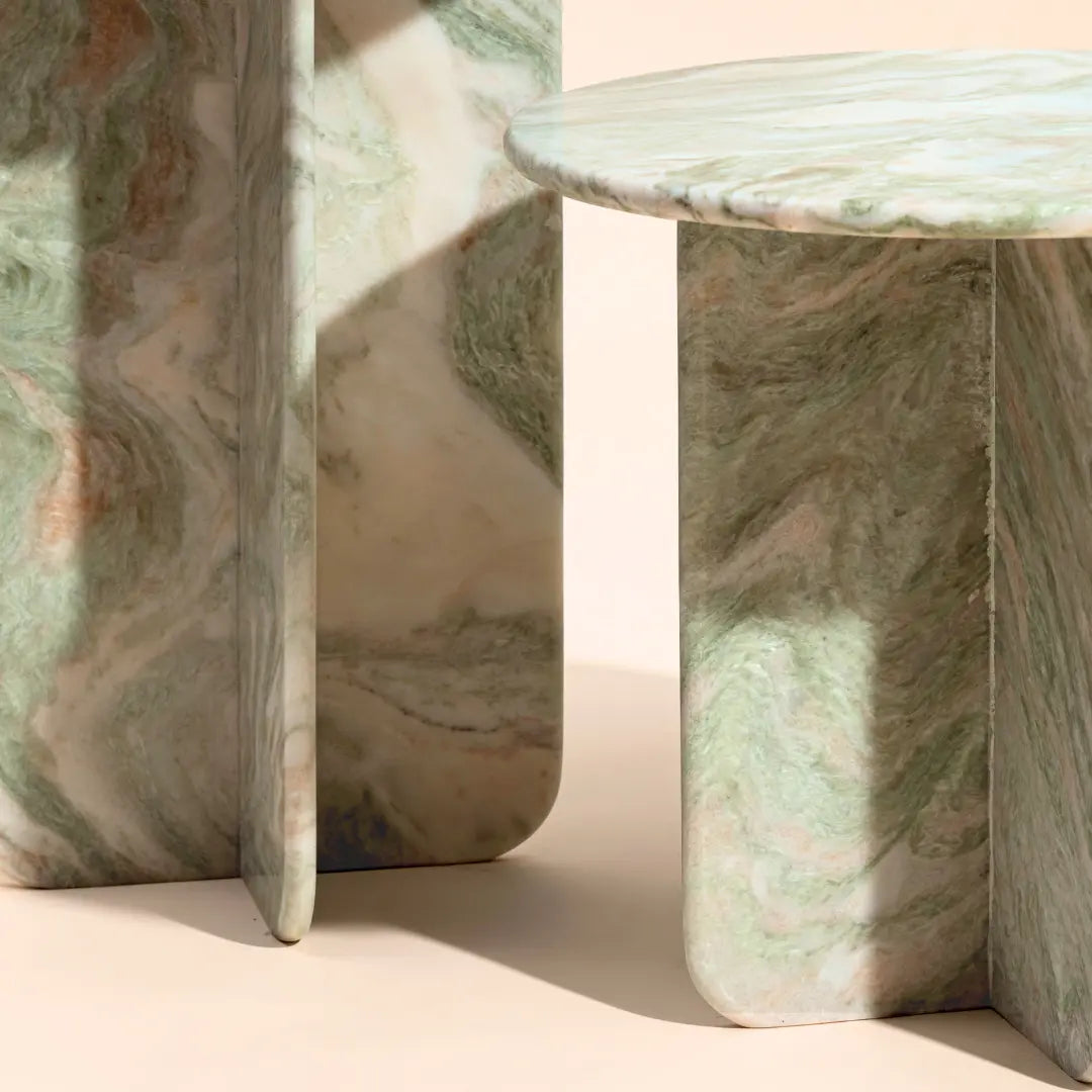 Our newly designed marble tables feature gentle curves on both the tabletop and legs, creating a warm and inviting aesthetic. It's a stunning accent piece for any space.