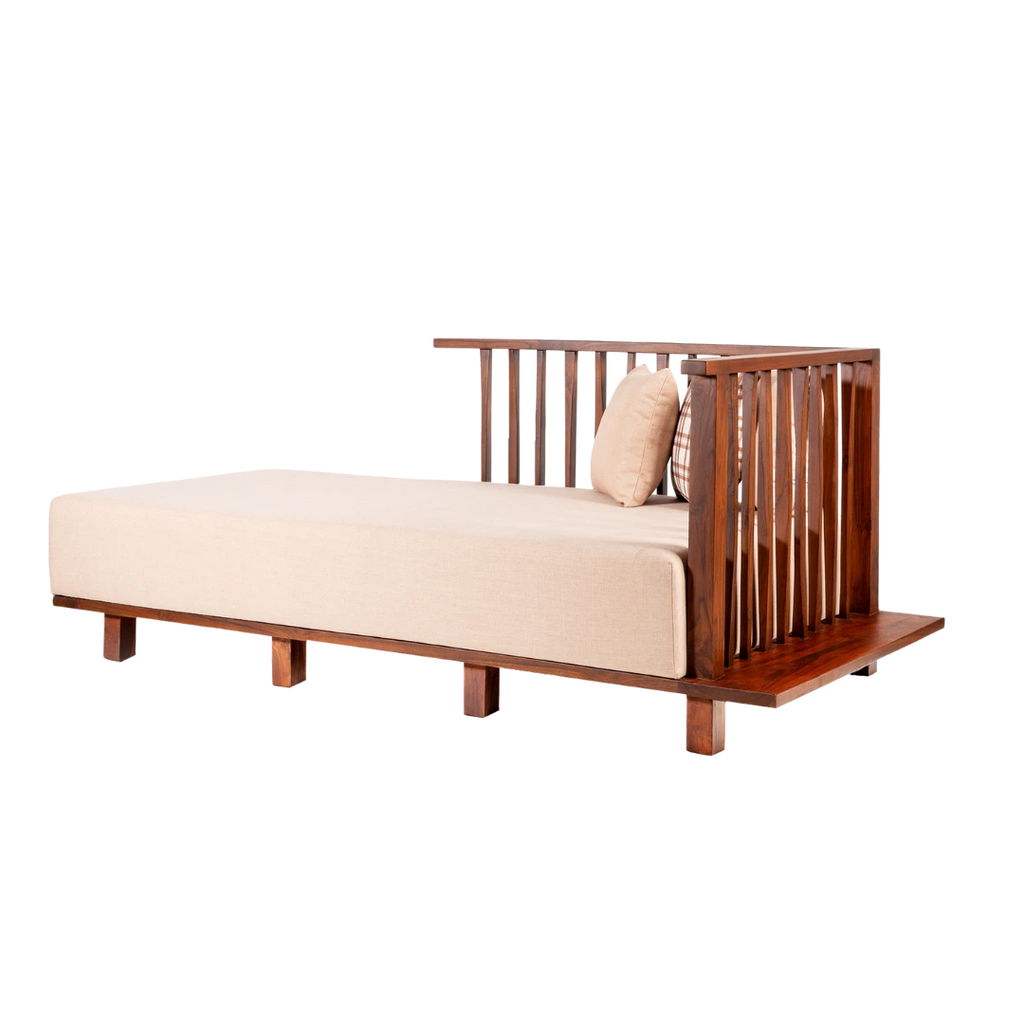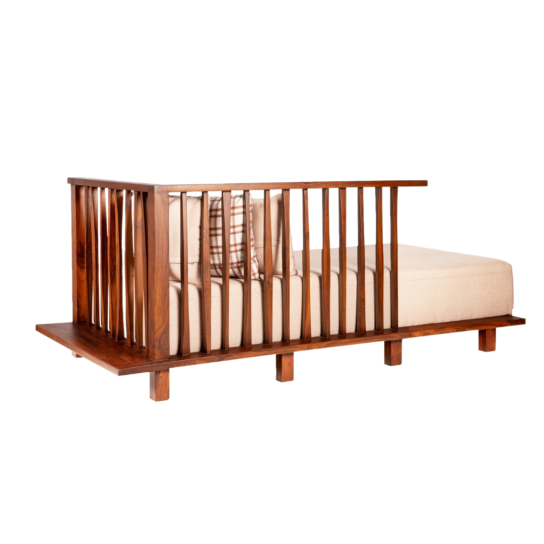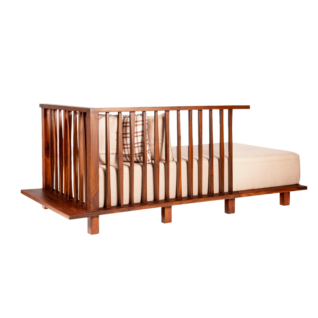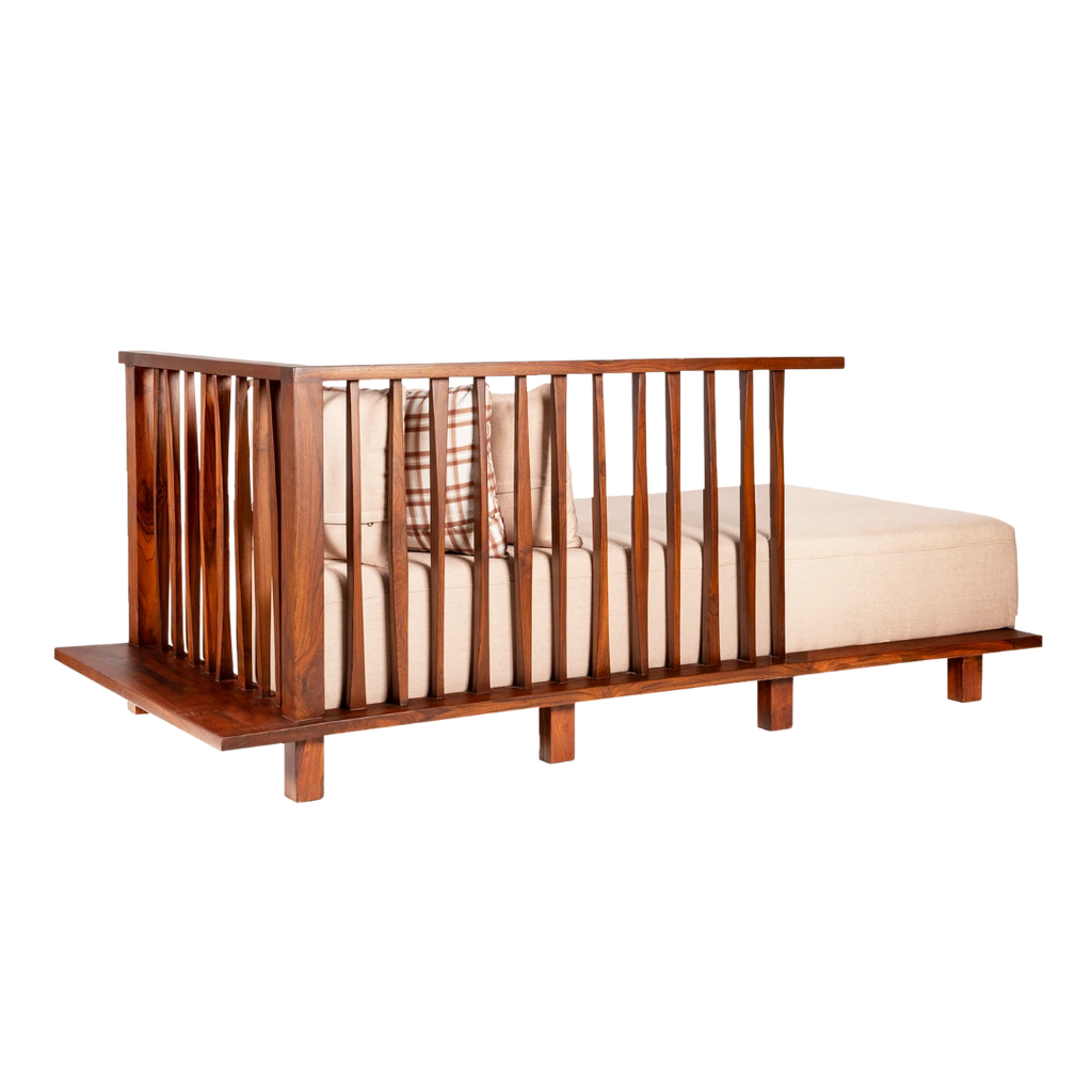 TAKHAT is a refined nod to traditional craftsmanship — a teak wood daybed featuring intricately made wooden spindles that frame its form with grace and character. Rooted in heritage yet tailored for contemporary living, TAKHAT offers a perfect balance of structure and comfort, making it an inviting piece for both lounging and display.