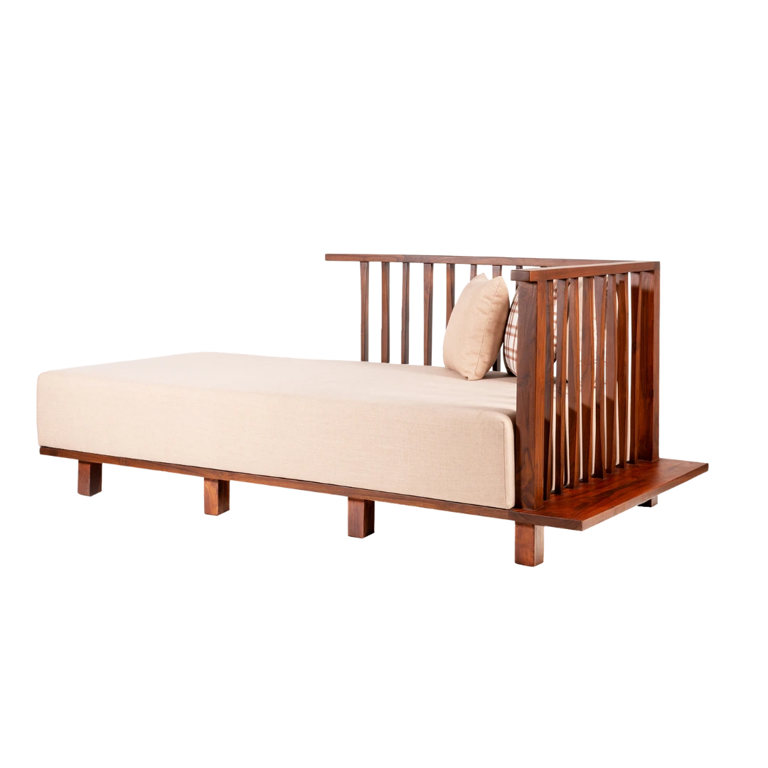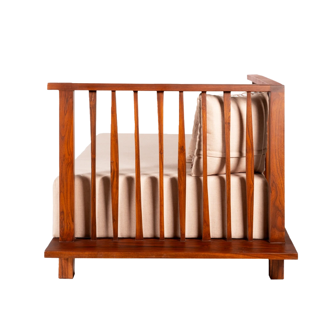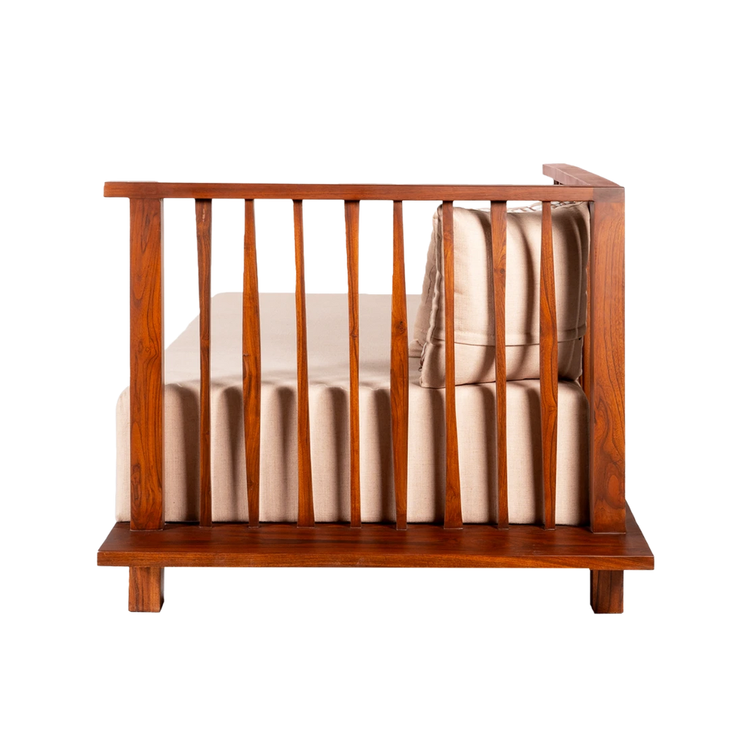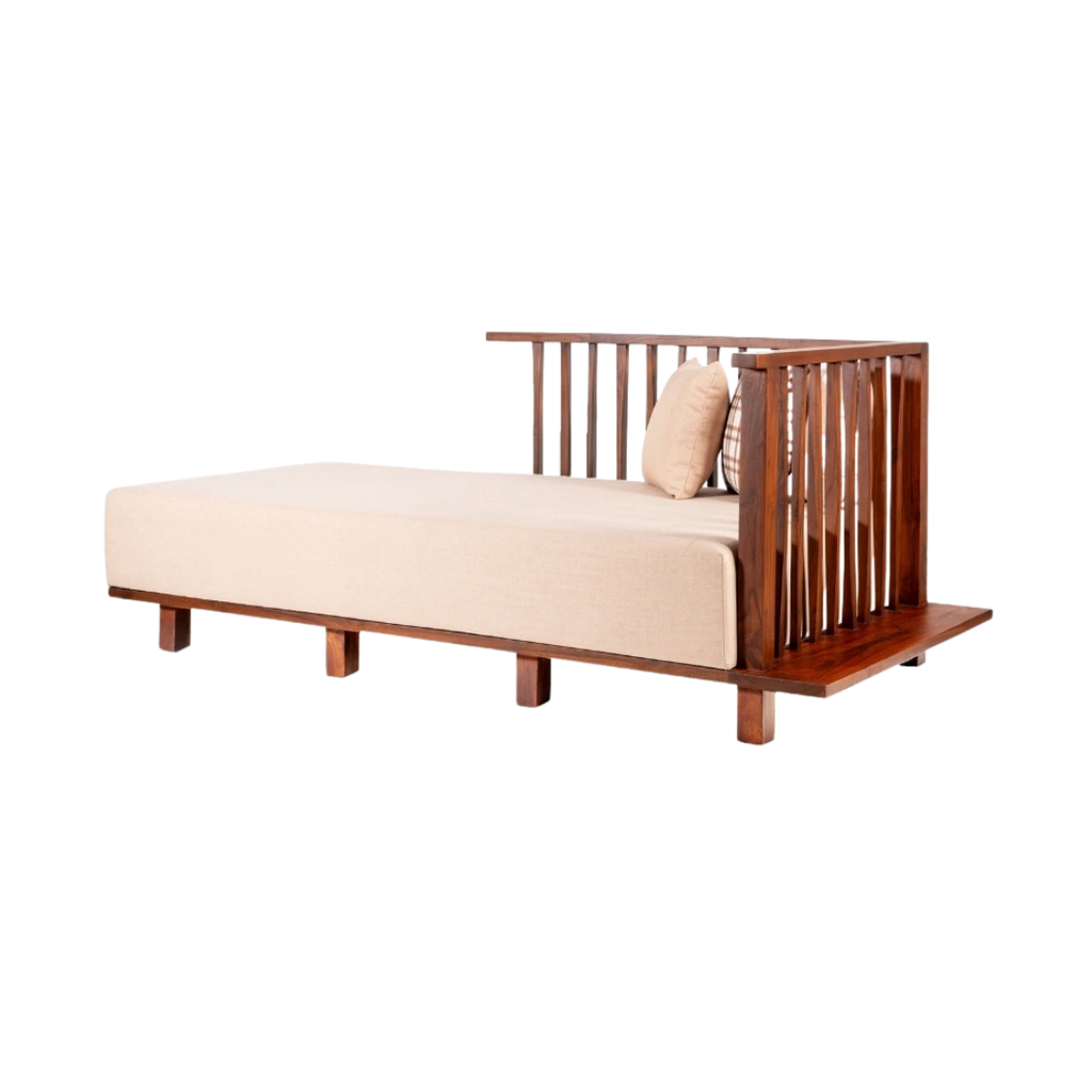 TAKHAT is a refined nod to traditional craftsmanship — a teak wood daybed featuring intricately made wooden spindles that frame its form with grace and character. Rooted in heritage yet tailored for contemporary living, TAKHAT offers a perfect balance of structure and comfort, making it an inviting piece for both lounging and display.