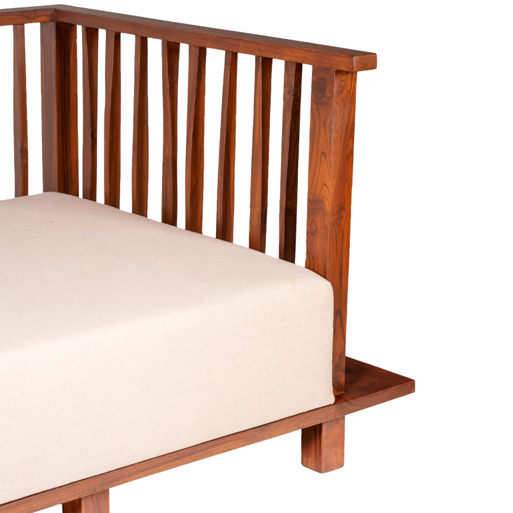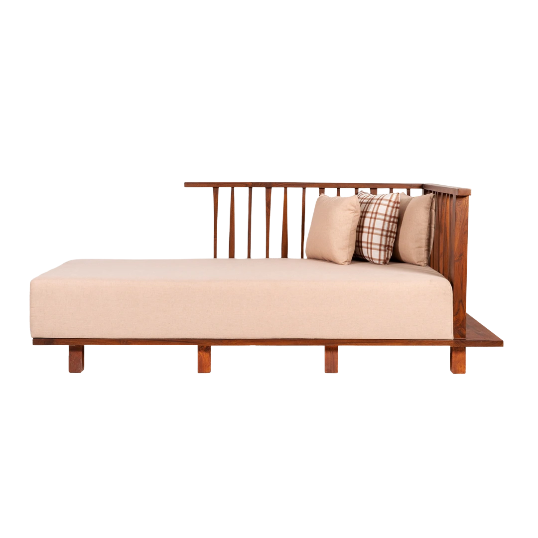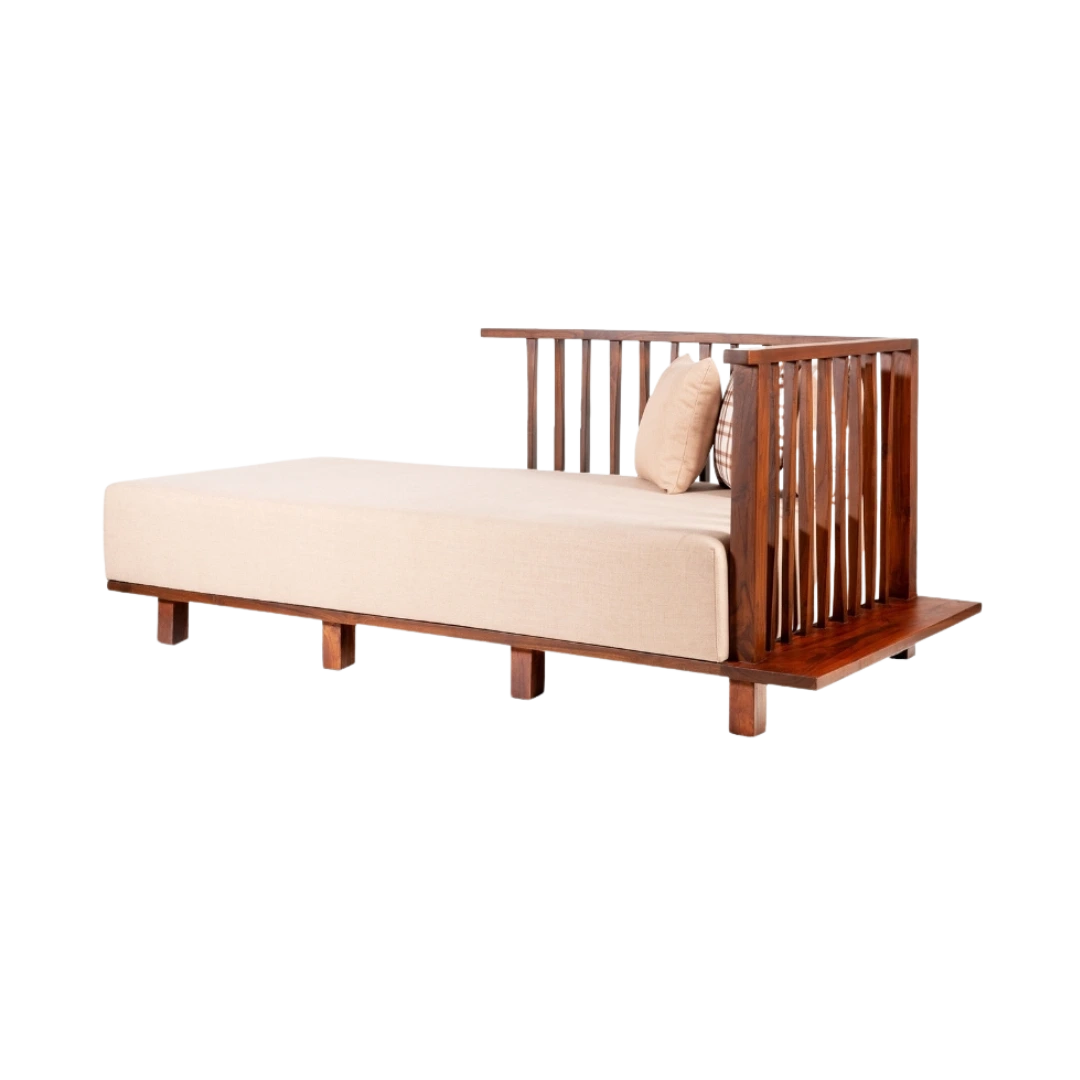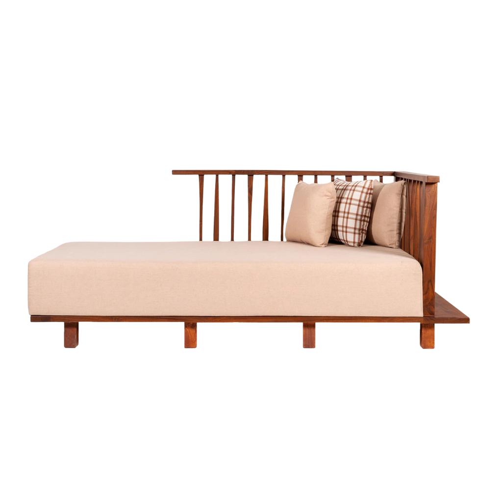 TAKHAT is a refined nod to traditional craftsmanship — a teak wood daybed featuring intricately made wooden spindles that frame its form with grace and character. Rooted in heritage yet tailored for contemporary living, TAKHAT offers a perfect balance of structure and comfort, making it an inviting piece for both lounging and display.