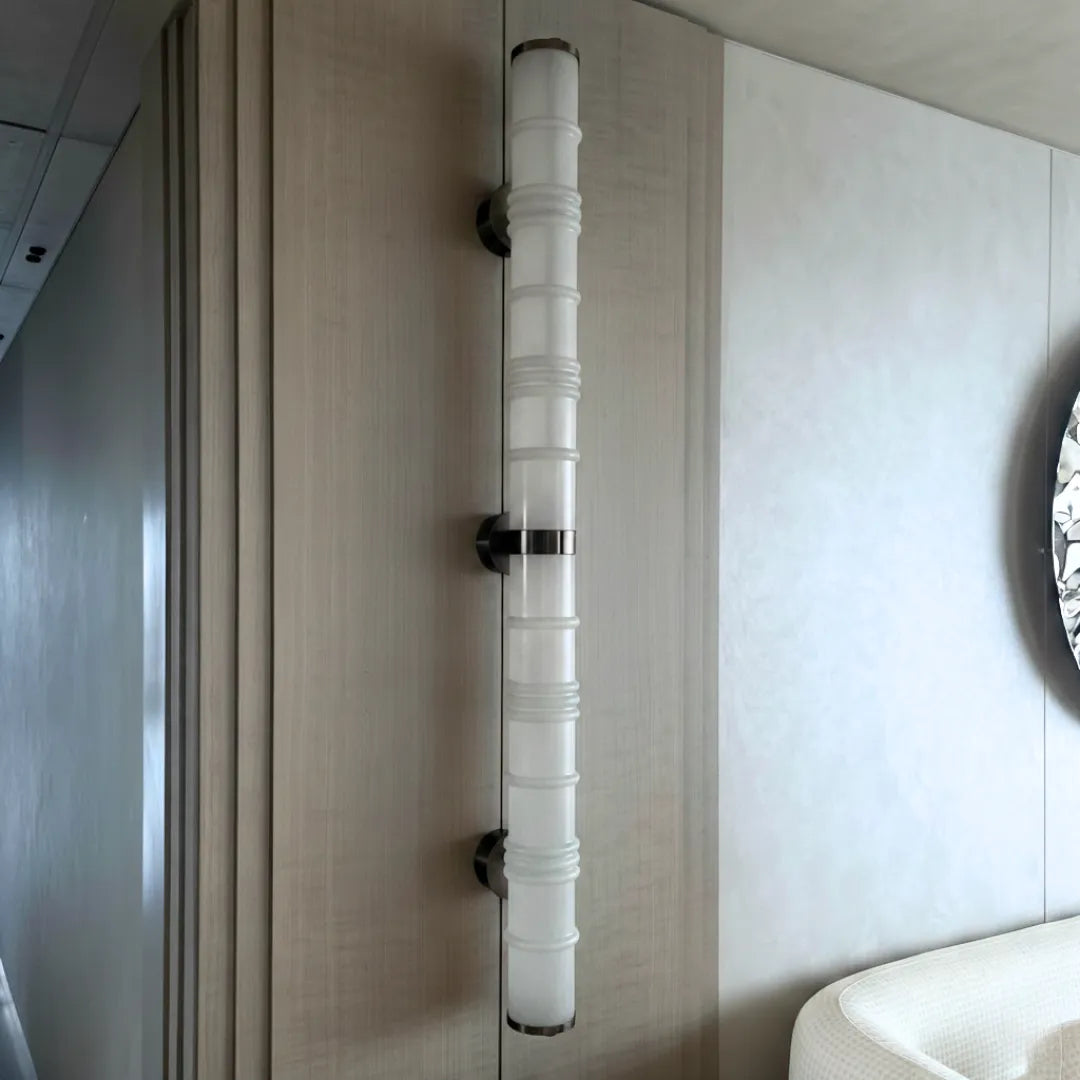 The Wall Sconce WS 40 combines premium materiality and minimal form for an elevated wall lighting solution. Crafted with a steel SS-304 framework and a tall Australian marble tube, it includes a built-in LED for clean ambient illumination. Perfect for bedrooms, lounge feature walls or luxury hallways, this wall light blends sculptural presence with functional lighting.