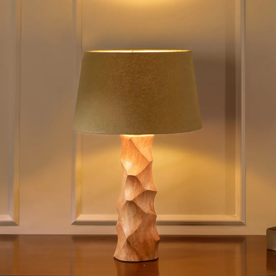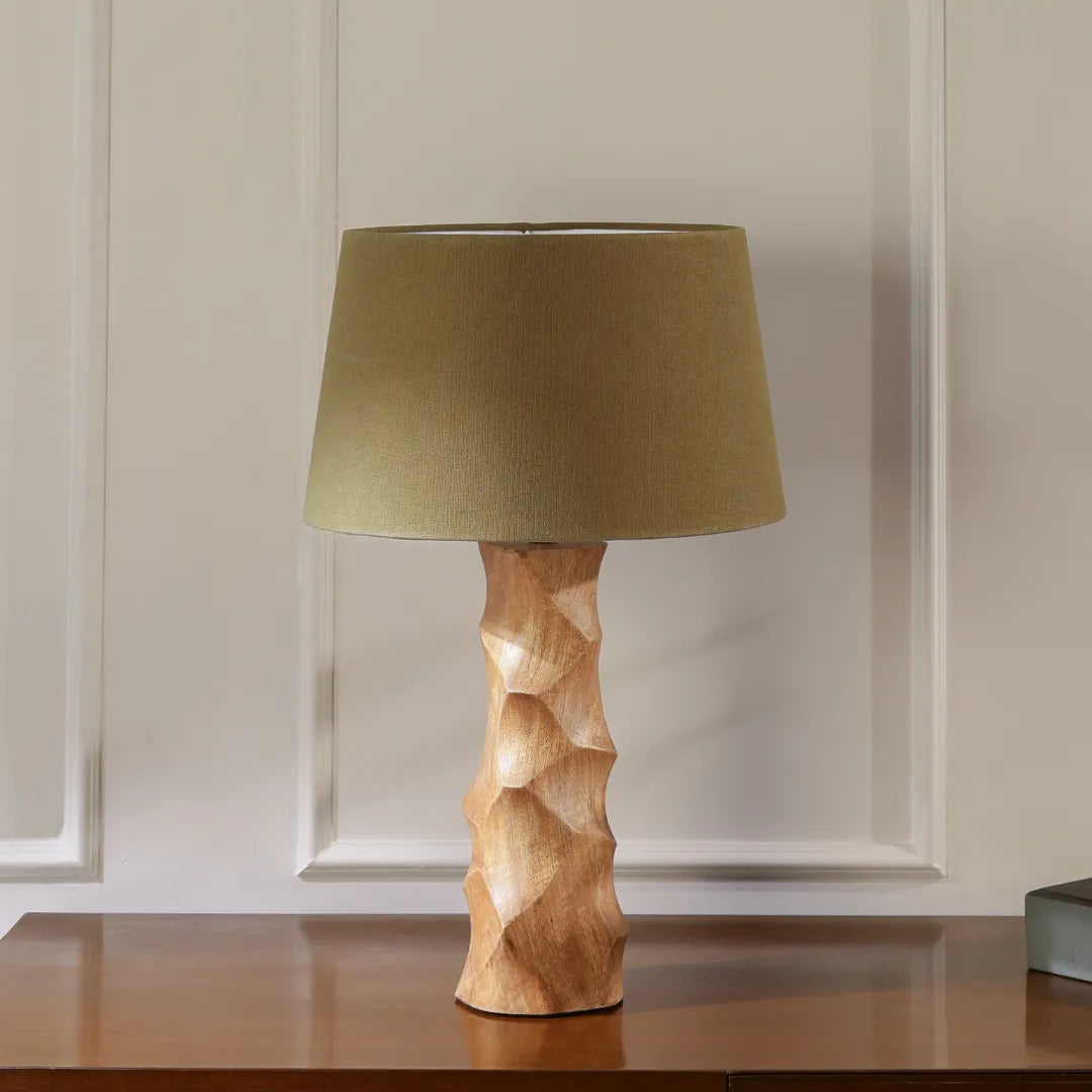 Foresta by Lumehaus features a light brown wood base paired with a natural dark green handloom lampshade. The combination of the warm wood tones and the textured handloom fabric creates a harmonious and natural aesthetic, bringing a touch of rustic charm to any interior. Illuminate your space with the organic beauty and craftsmanship of Foresta by Lumehaus.