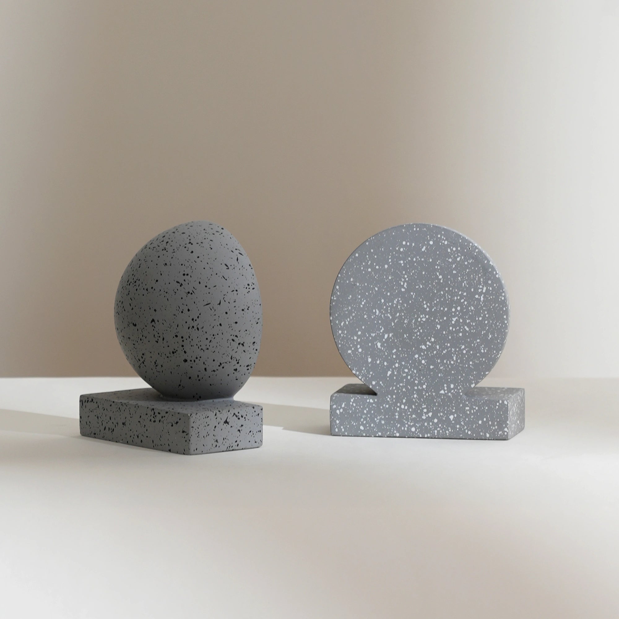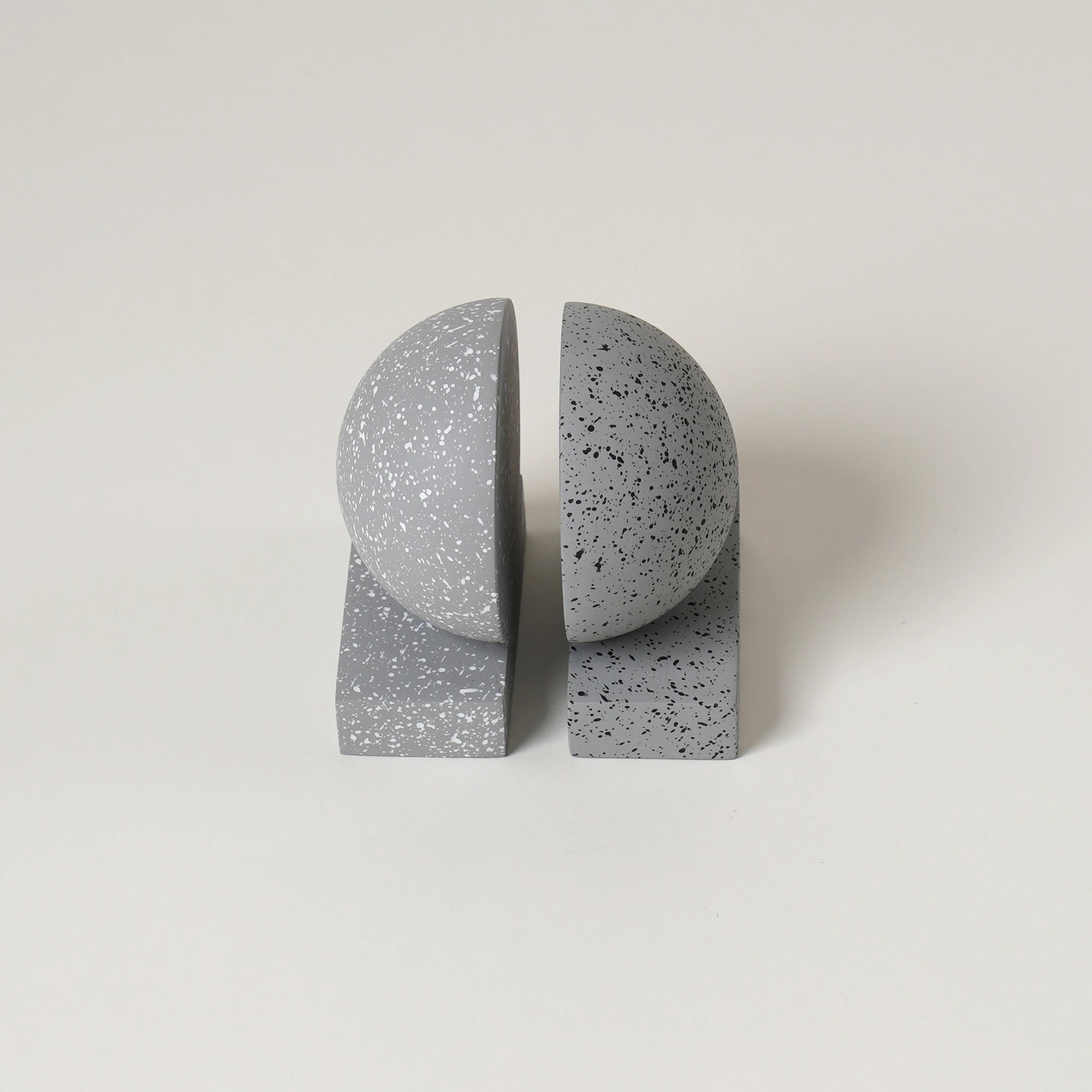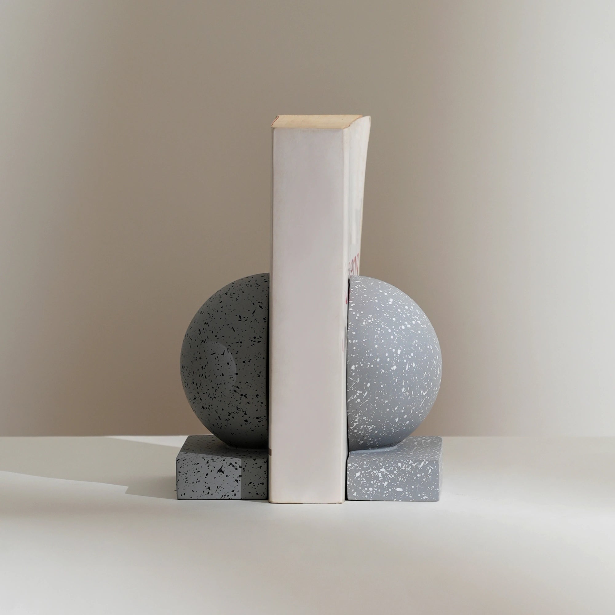Introducing our stylish concrete bookends, designed to add a contemporary touch to your home or office. Featuring a unique design with smooth curves and a speckled gray finish, these bookends are both functional and artistic. They provide excellent support for your favorite books, ensuring they stay organized and upright. The minimal yet striking design makes them a perfect fit for any modern space, whether on a bookshelf, desk, or coffee table. These bookends also make for a thoughtful gift for design enthusiasts and book lovers alike.