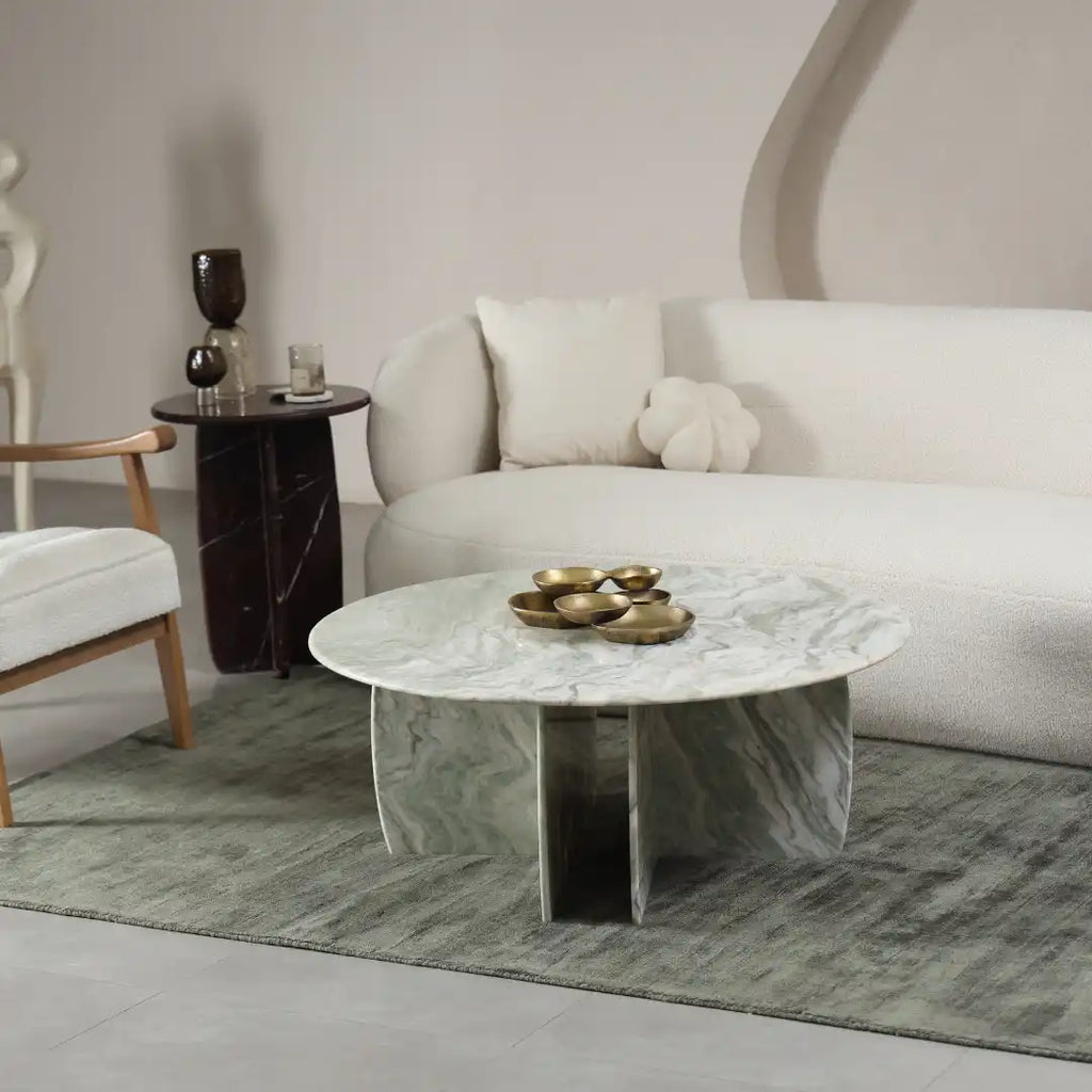 • Introducing the Raio Marble Table - Pista: Our newly designed marble tables feature gentle curves on the tabletop and arched legs, creating an warm, cozy and inviting aesthetic.