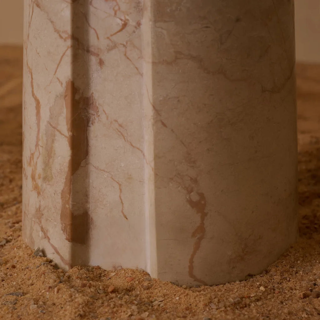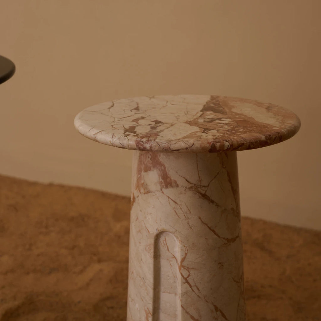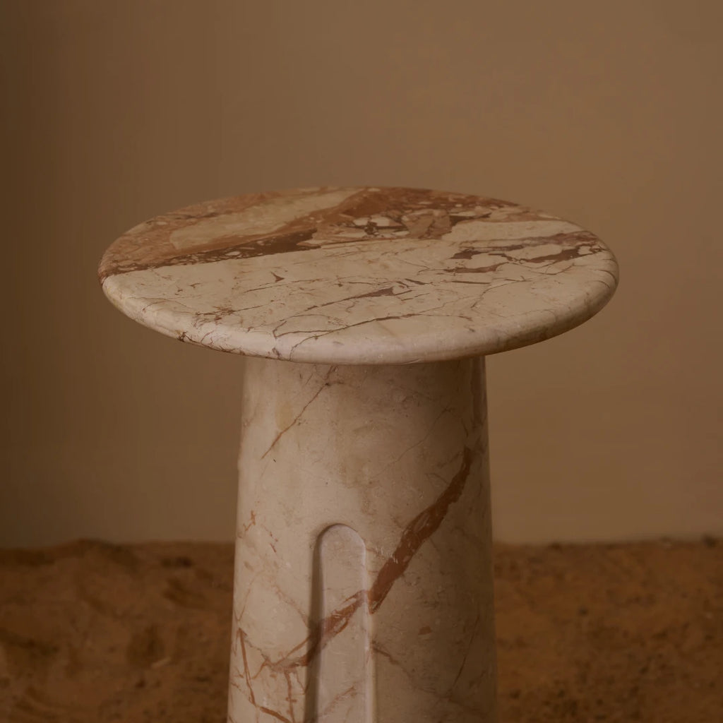 Shani side table is an all stone table that derives it’s inspiration from the Saturn. The lines and curves reflect the majestic rings and the spherical shape of the planet. Making this piece a unique addition into your spaces.