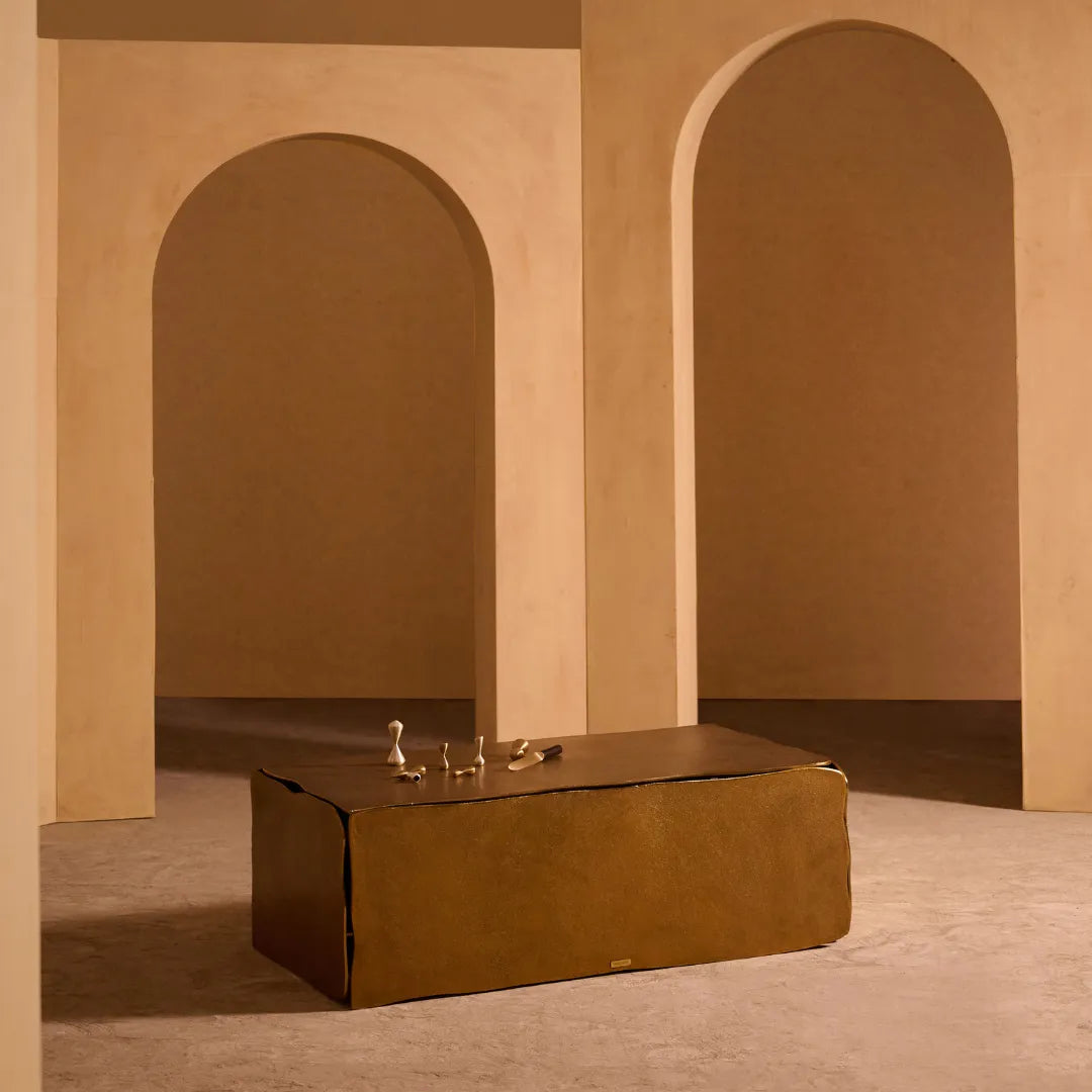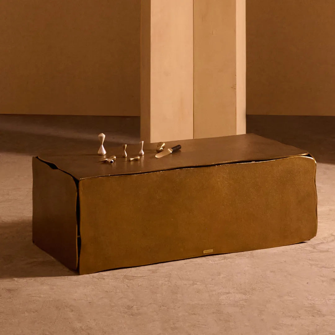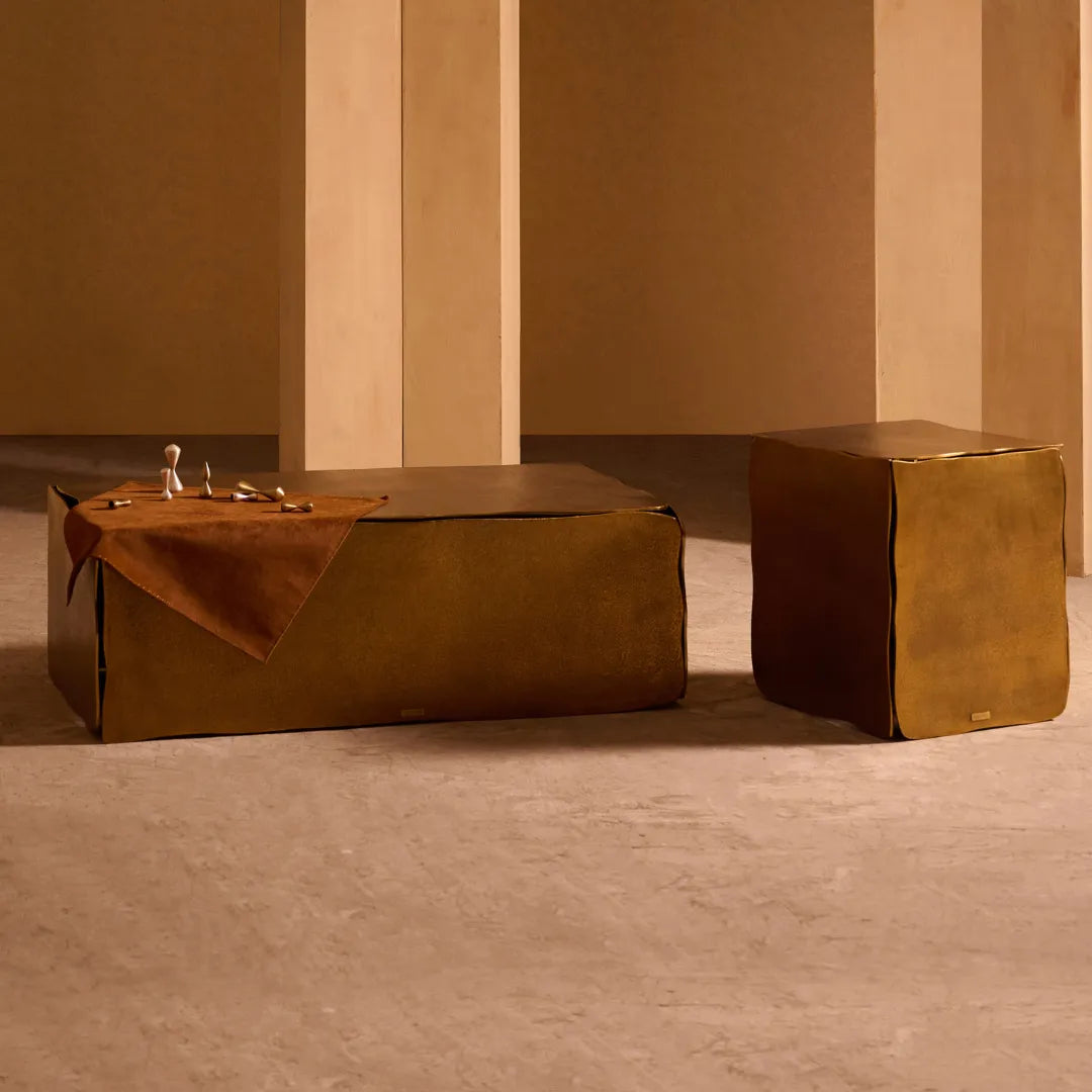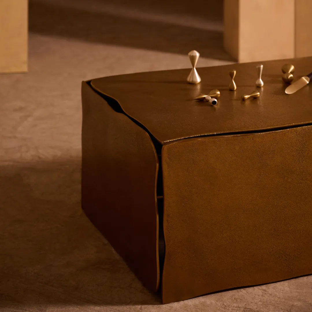 A bold, modern coffee table crafted from casted aluminium with a rich antique finish. Its clean, sculptural form adds character and warmth, making it a perfect centerpiece for contemporary and classic living spaces alike.